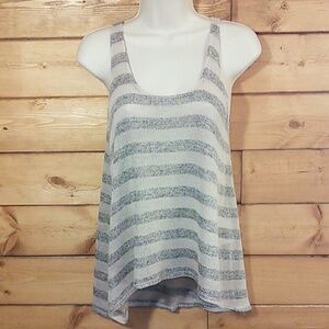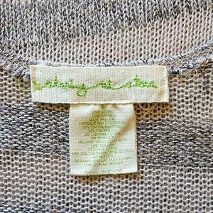Anthropologie/Urban Outfitters brand. Very lightweight delicate knit swing tank in gray and beige stripes. 55% rayon, 32% polyester/8% cotton/ 5% Spandex. Chest measures approx 16" from underarm seam to underarm seam. There is a hard-to-see minor thread pull (see photo) but otherwise good condition. Size Small.