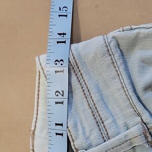Staring at Stars Urban Outfitters Size 26 LIght Wash Flare Leg Lace Accent Jean. Used Condition. Front Looks Excellent, Hems have ink stains on each seam and back has very light spots - shown in closeup photo and video. No Puckering or Pulling at Crotch Area. Low Rise with Zipper Fly and Triple Button Closure. Adorable Jeans with a very Wide Flare Leg. Please refer to measurements in photos to ensure proper fit.