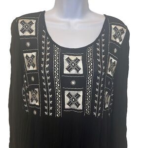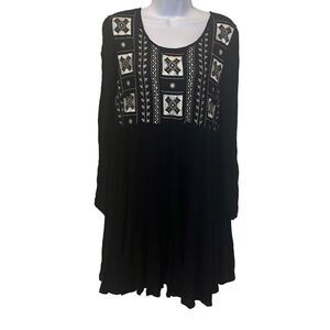 Staring at Stars EUC Black White Embroidered Long Sleeve Babydoll Dress Sz M