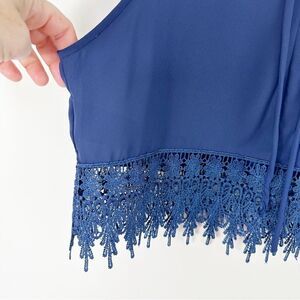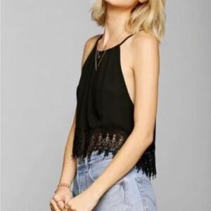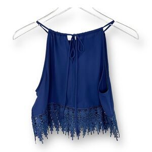 Staring at Stars Navy Blue Crochet Anthro Boho Halter Crop Top Sz S
