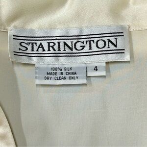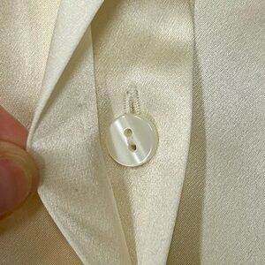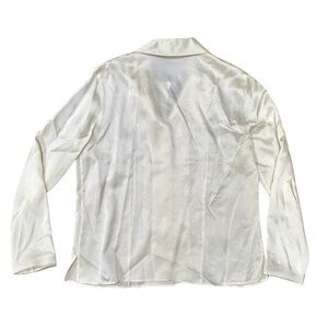 Elevate your wardrobe with this luxurious 100% silk blouse by Starington. This classic cream button-down features a wide collar, hidden placket, and a fluid drape that adds effortless elegance to any look. Perfect for layering under blazers or wearing tucked into trousers or skirts.