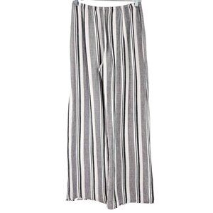 Stark Gray & White Striped Wide Leg Open Slit Pants Women's S Boho Hippie Beach
