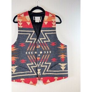 Stark Womens Vest Gray V Neck Slim Fit Waistcoat Wool Southwestern Aztec Large