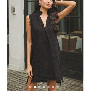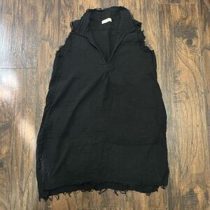 Stark X Anthropologie Black Gauze Dress Vneck Sleeveless Raw Hem Small