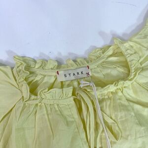 Stark X Blouse Womens Medium Yellow Tie Front Ruffle Short Sleeves Top New