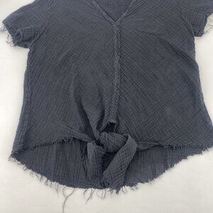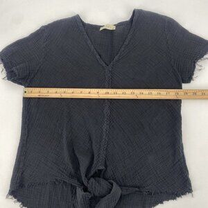 Stark X Size Small Black V-Neck Gauze Tie Front Blouse Exposed Hem