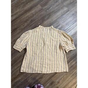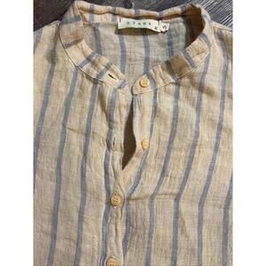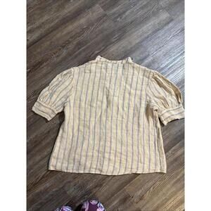 Stark X Striped 100% Linen Minimalist Luxury Natural Blouse USA Women’s size Small in good preowned condition