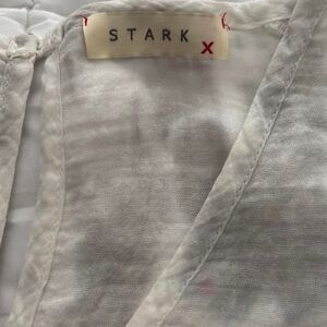 Founded in 2012 by Perry Stark, StarkX is known for luxurious softness and rich garment-dyed fabrics that flatter every body. This airy cotton gauze top features dreamy blue tie-dye tones, a relaxed fit, and a frayed hem for that effortless California-boho vibe. Pre-owned, great condition.