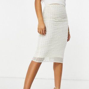 Starlet Pearl Embellished Pencil Midi Skirt Size 12 NWT *flaws*
