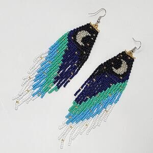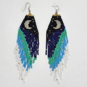 Starlight Starbright Blue Beaded Crescent Moon Earrings