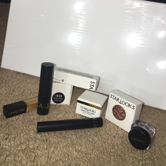 I like trades!! Included: "High life" liquid illuminator, Party Spectrum mascara (dusty rose with glitter), Skin perfecting blush, Golden ticket liquid eye liner, Aqua water eye shadow, Concrete cream liner/ eye base, Milky Way infinity eye liner and WYD infinity eye liner! Comment if you want any more pics! Everything is brand new and never used except the illuminator has been used once!
