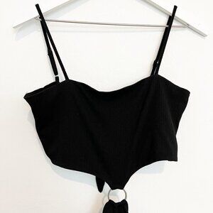 Starlow O-Ring Y2K Tie Back Strap Ribbed Flare Bootcut Jumpsuit Boho Black Small