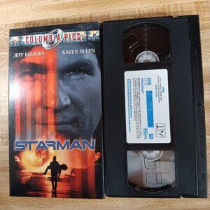 The product is a VHS tape of the 1984 film "Starman" directed by John Carpenter and starring Jeff Bridges, Karen Allen, and Charles Ginger. This sci-fi romance cult classic follows the story of a scientist who, after a near-death experience, returns to find that his world has changed and he must adapt to his new reality. The VHS tape is in NTSC signal standard with English language and is not a former rental. This collectible item from Columbia Pictures is a must-have for fans of '80s sci-fi and romance films.