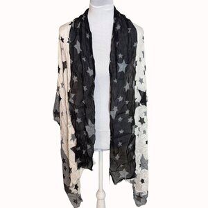 Wrap yourself in celestial charm with this lightweight star-patterned scarf. Its black and white gradient design adds sophistication, blending warmth and style seamlessly.