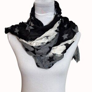 patriotic, americana, star scarf, gradient scarf, Express scarf, black white scarf, lightweight scarf, trendy scarf, women's scarf, fashion scarf, soft scarf, casual scarf, gift idea scarf, versatile scarf, modern scarf, fourth of july, july 4, stars and stripes, usa, dress scarf, Scarf, Stars, Star pattern, Black and white, Accessory, Fashion accessory, Shawl, Wrap, Lightweight, summer scarf, spring scarf, fall scarf, Women's fashion, Neckwear, Textile, Scarf Style