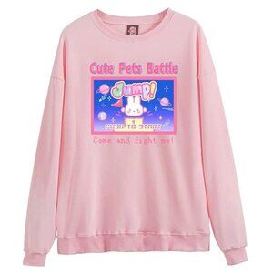 Add a pop of playful style to your wardrobe with this Starry Collector Pastel Goth Harajuku sweatshirt. Featuring a unique cartoon pet battle design, this lightweight long sleeve crewneck offers a loose, oversized fit in soft pink with a touch of stretch.
