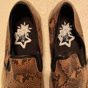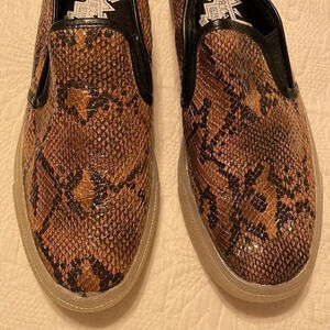 Starry Eyed Animal Snakeskin Print Slip-on Sneakers Manmade Brown Black 7