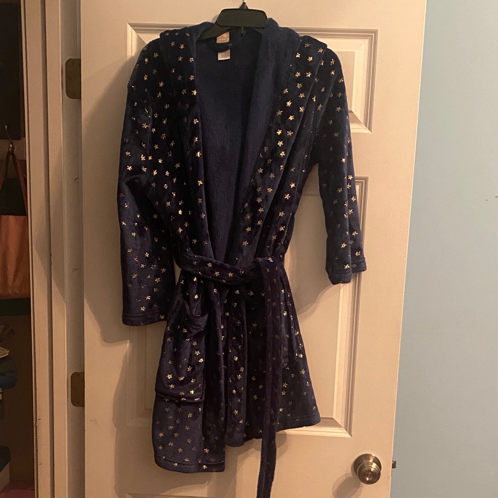 Luxurious blue robe with gold star accents. Ideal for relaxing nights.