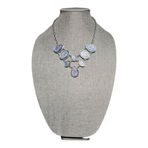Make a dazzling impression with the "Starry Sapphire Mosaic Statement Necklace," a celebration of design that mirrors the midnight sky. Each link of this enchanting piece is a tribute to the night's beauty, with deep sapphire stones embedded in a silver setting that mimics the intricate work of a mosaic artist. The varying shades of blue, from the lightest hint of twilight to the deep tones of the nocturnal expanse, are arranged in harmonious asymmetry to catch the light and the eye. Crafted with a focus on high-impact style, this necklace is a bold choice for those who wish to make a statement. The substantial size and artful arrangement of the stones create a centerpiece that is both elegant and commanding. Suitable for both special occasions and as the focal point of a sophisticated ensemble, the "Starry Sapphire Mosaic Statement Necklace" is a must-have for those who wish to add a touch of celestial wonder to their wardrobe.