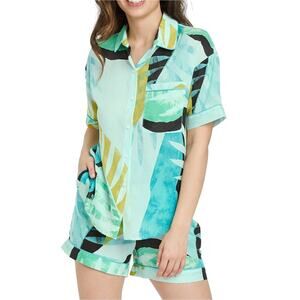 Stars Above Button Up Sleepwear Shirt Lightweight Green Floral Print Women's Size XXL, New with Tags