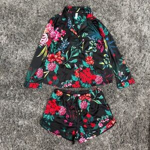 Stars Above Floral Satin Pajama Set in Black Multi, Size M