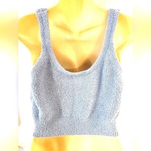 Super cute and cozy Stars Above Fuzzy Crop Top in light blue, perfect for a cozy night at home, size medium.