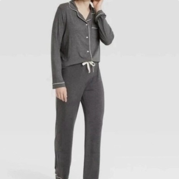 Stars Above Pajama Set Long Sleeve Shirt Pants Gray Soft Womens Medium