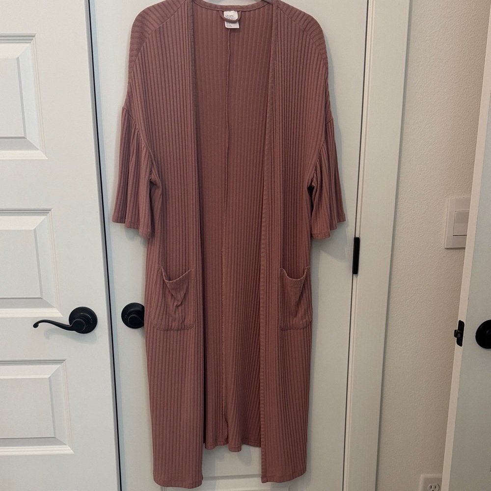 Elegant ribbed knit robe/cardigan. Ideal for cozy layering. Pockets. 533