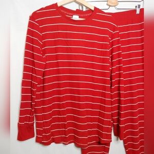 Stars Above Thermal Pajama Set Long Sleeve Red White Wide Stripe Large L Holiday
