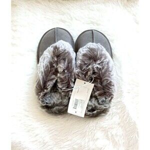 Stars Above Women's Micro-Suede Faux Fur Slippers (Size 6) "GRAY" ~ NEW!!!