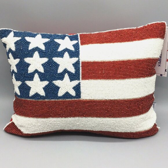 NEW Stars & Stripes Beaded Flag Accent Lumbar Pillow