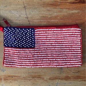 Stars & Stripes Glass Seed Bead Artisan Made American Flag Wristlet Clutch Purse