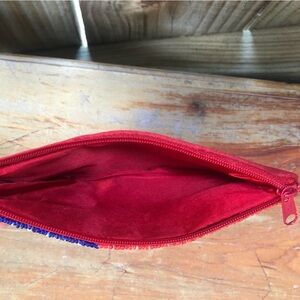 This Hand Beaded Coin Purse is a Handcrafted Piece of Art. The Front is Detailed with Handmade with Glass Beads. The Back & Inside is Lined with a Red Silky Nylon Fabric. Zip-Top Closure to Secure Valuables & a Nylon Loop Wrist Strap. Carry it On It’s Own Use to Organize Items in Your Purse or Bag.