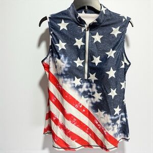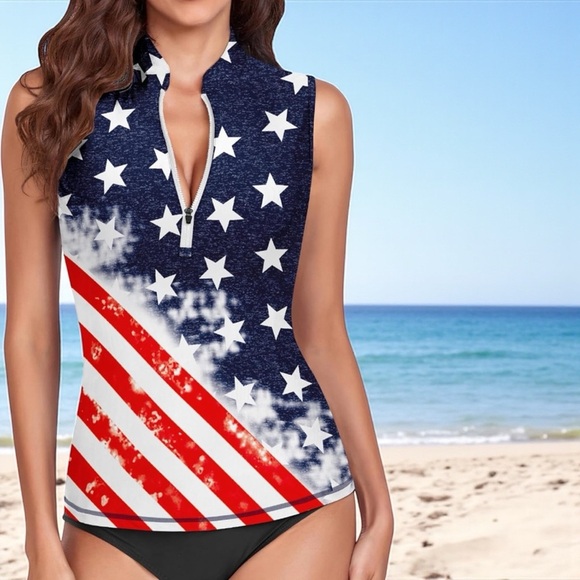 Stars & Stripes Sleeveless Rash Guard Tankini Top w/ Built‑In Bra, Size XL I NWT