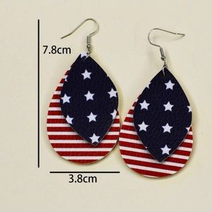 Stars & Stripes Water Drop Leaves Leather Earrings
