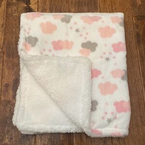 -Soft plush and sherpa baby blanket with stars and clouds print