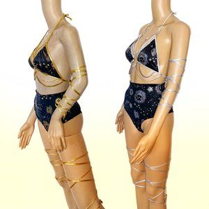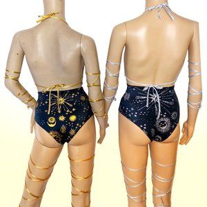 Stars and Moons Galaxy Celestial Rave Festival Outfit. 6 pieces