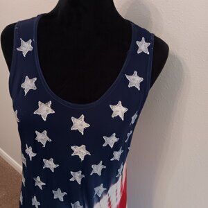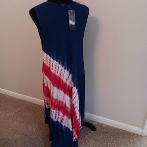 Stars and Stripes Tie Dye Asymmetrical Tank Dress One Size 100% Rayon.