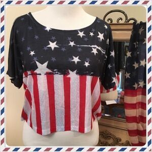 🇺🇸Stars & Stripes American flag print short sleeved top, loose fit with rounded neckline. Perfect top for the summer and all festive holidays! Great year after year...100% Polyester ✨ Fits true to your normal body size - size large is modeled on size 12 body form✨