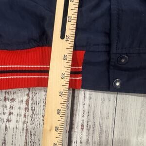 Vintage Starter Diamond Collection Cleveland Indians varsity/bomber jacket. Navy/red nylon, quilted lining, rib-knit trims, snap front, embroidered logo. Men’s L.