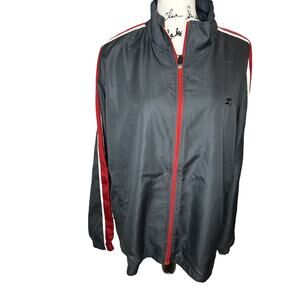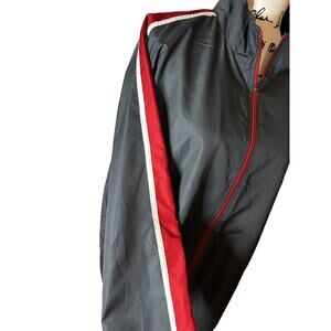 Keywords: Starter jacket, mens jacket, gray jacket, red stripe jacket, full zip jacket, lightweight jacket, athletic jacket, casual jacket, track jacket, sportswear, outerwear