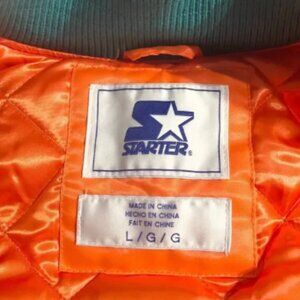 Starter Miami Dolphin Jacket Mens Large Orange Blue Varsity Bomber Super Bowl