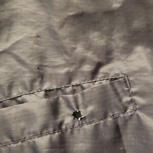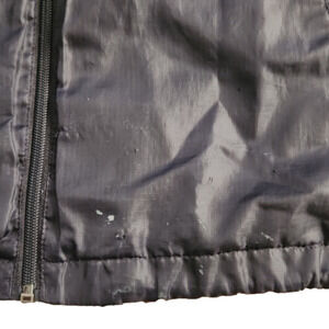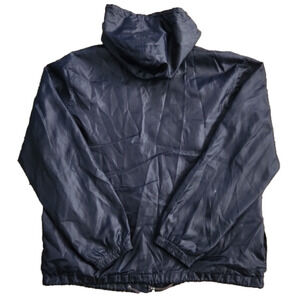 Navy blue Starter zip-up windbreaker style jacket. Size Large. Shell/lining - 100% Polyester. Some flaws can be seen in pics, in decent overall condition.