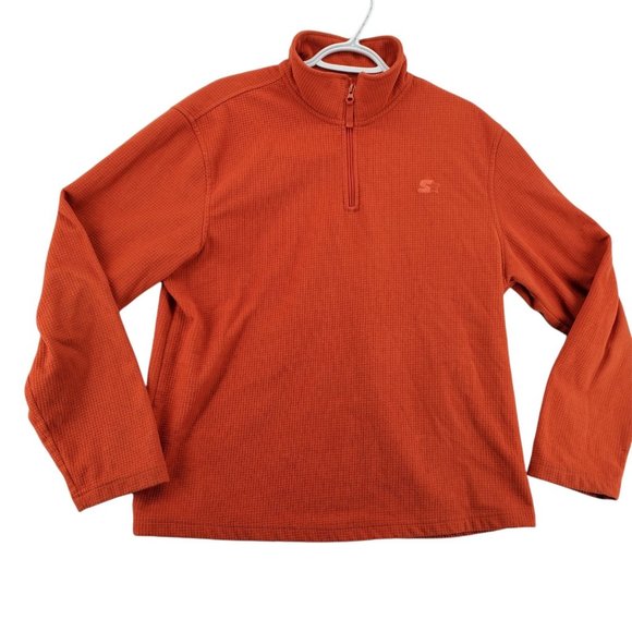 Starter Sweater Mens 1/4 Zip Fleece Orange Sweatshirt Pullover Size Medium