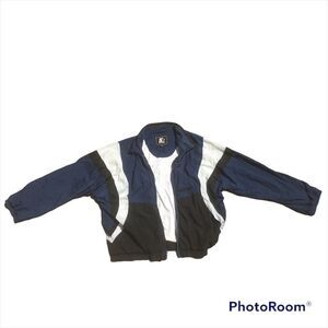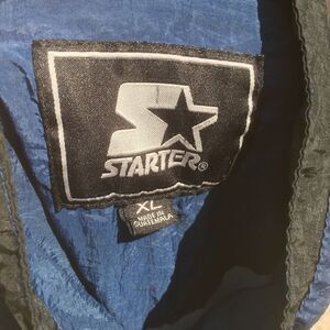 Starter Windbreaker. Vintage Jacket blue, white and black. Size XL . 7/10. Paint splatter stains is pictured. Zipper is fully functionable. Inside lining for warmth. #starter #startvintage #vintagestarter #windbreaker #vintagewindbreaker