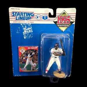 This Starting Lineup 1995 Edition features Mo Vaughn, a prominent MLB figure. The set includes a detailed action figure and a collector's card, both encased in original packaging. This collectible item will appeal to baseball enthusiasts and collectors alike, capturing the essence of the sport in the 90s.