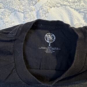 The Starting Lineup Turn Down For What SS Crewneck Graphic T-Shirt is a unisex adult shirt in size small. Made from a comfortable cotton blend material, this black shirt features a bold graphic print on the front. With a classic crew neck and short sleeves, this T-shirt is perfect for casual wear and sports enthusiasts alike. We pictures for measurements.