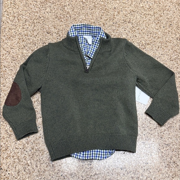 Starting Out Boy’s Quarter Zip Sweater with Brown Elbow Patches & Check Shirt