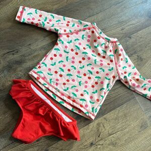 Starting Out Cherry Print 2 piece swimsuit Rashgaurd & ruffle bottom see INFO