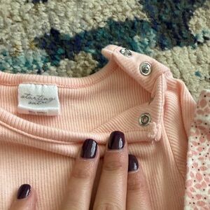 Charming pink set with a ruffle hem top and patterned leggings. Very soft. Only worn twice.